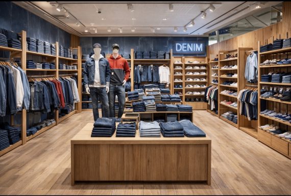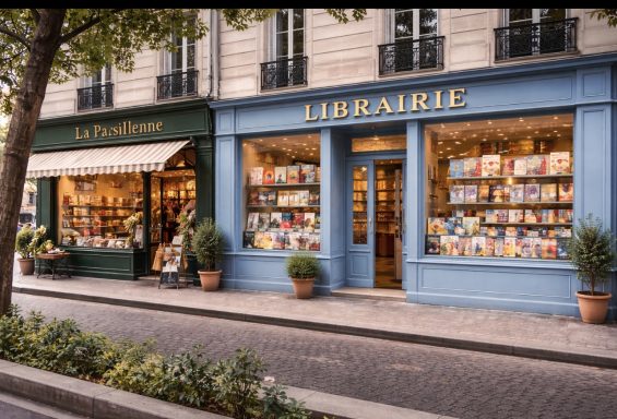 Une salle d'atente pour un cabinet d'avocats, un espace de cryothérapie, une boutique de jeans, une façade de boulangerie patisserie, une façade de bibliothèque et une façade de boulangerie